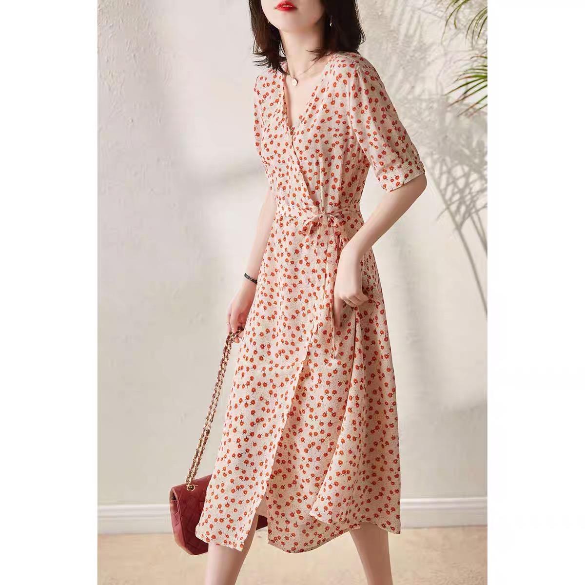 直播间女装折扣货源 凯撒贝雷真丝连衣裙 品牌女装尾货走份批发