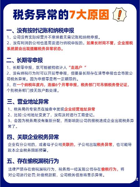 最近有老板问:我的公司税务异常了是什么原因导致的?今天就根据以往经验总结出了七大原因