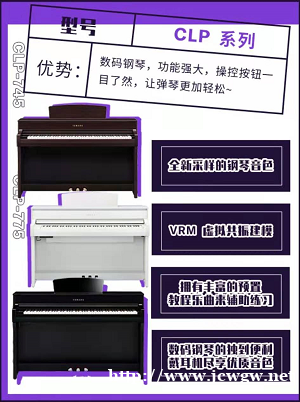 CLP系列对于已经有一定基础的爱琴人士来说,则是代表者对音乐品质的追求.弥补了电子键盘的手感不足,同时解决了原声钢琴的练习时间局限.